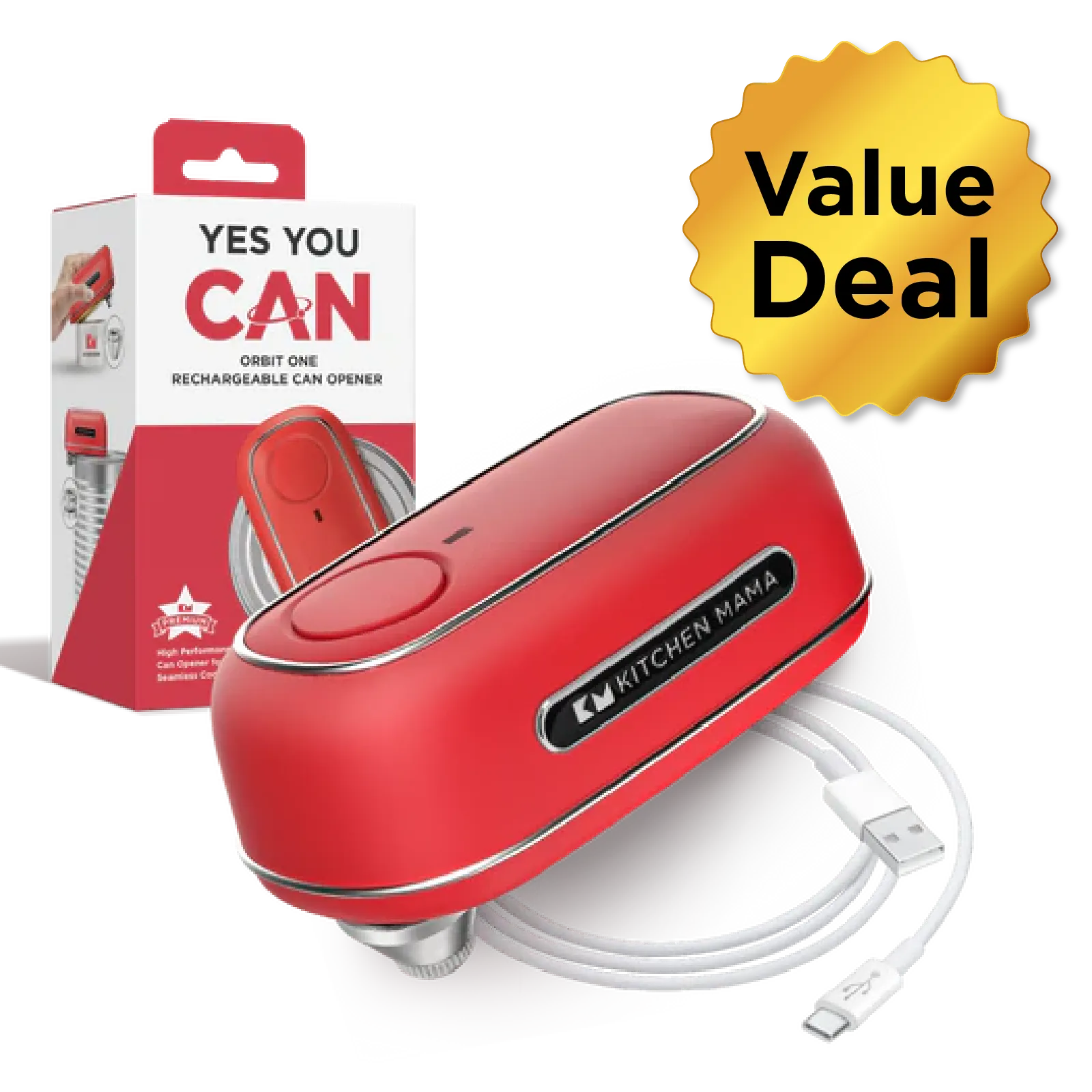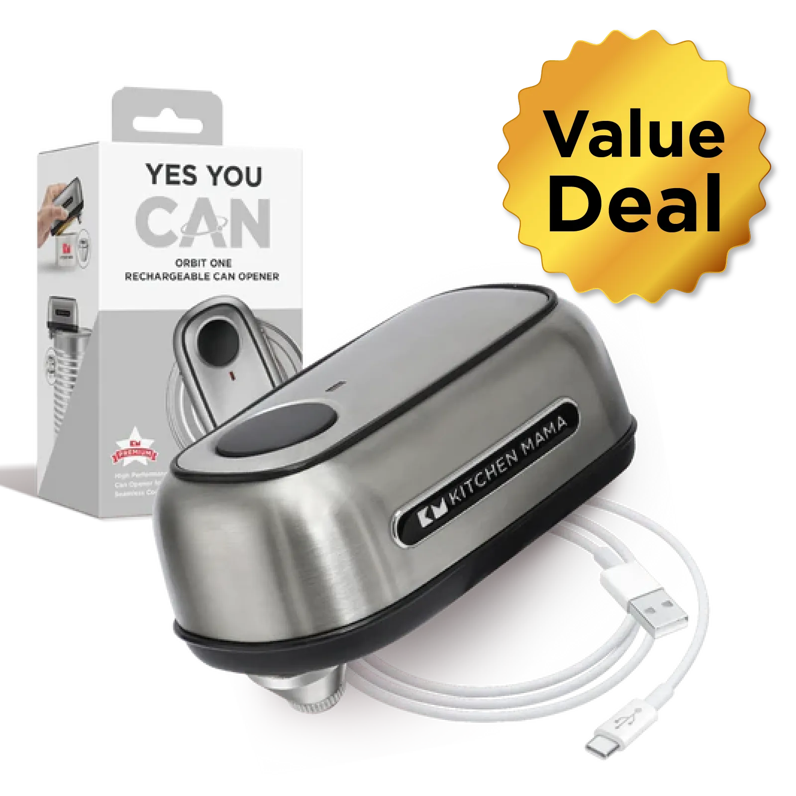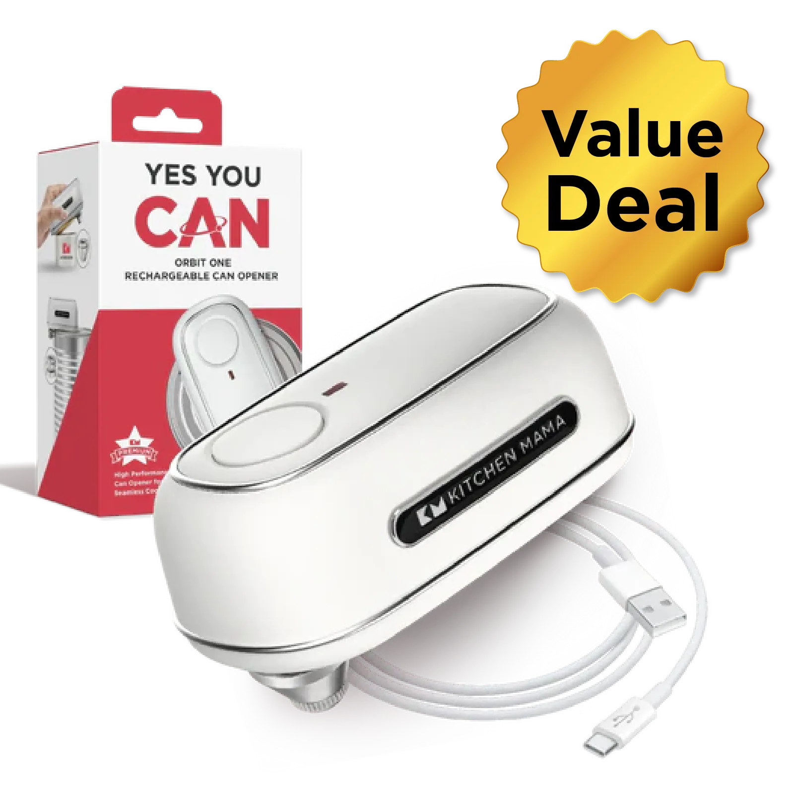 Effortlessly open cans with this rechargeable, one-press automatic opener. Its patented tilted blade cuts lids without touching contents. Versatile with interchangeable angled blades for various can sizes. Lightweight, sleek brand inspired design. Eco-friendly and convenient rechargeable operation.